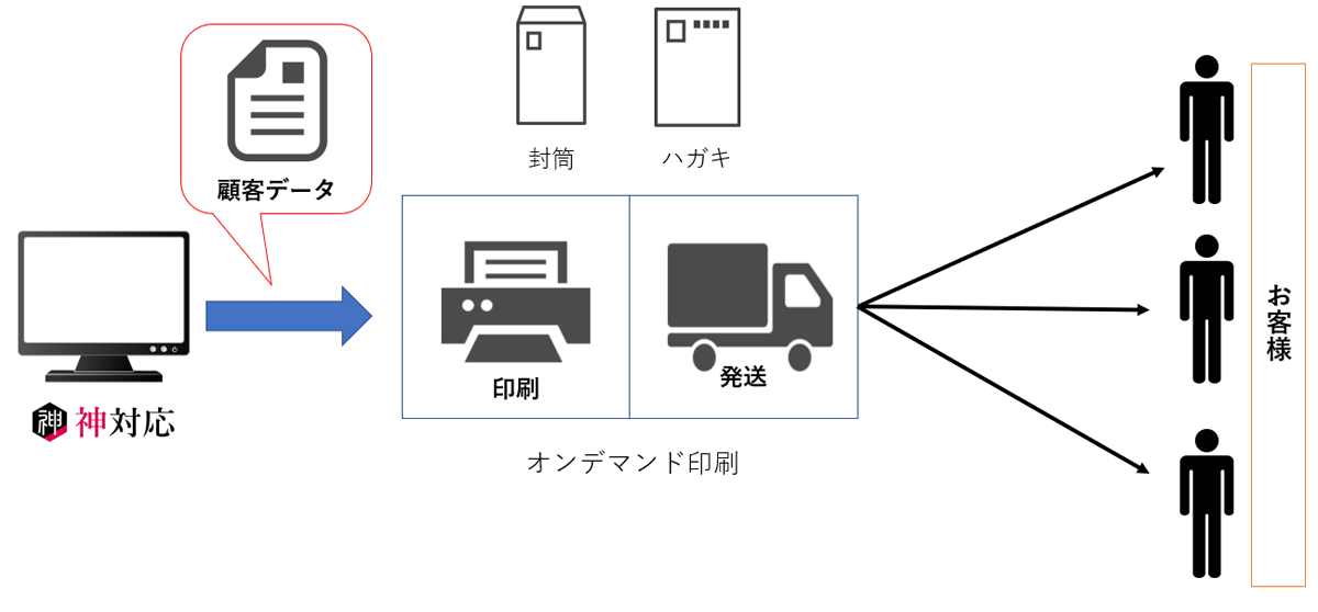 オンデマンド印刷との連携で、DMの発送までを⾃動化することができます。